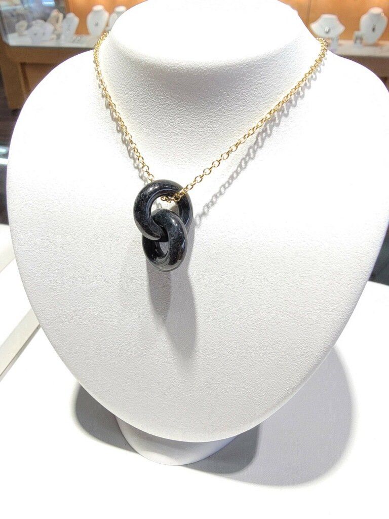 Even the interlocking piece in black is hand carved from a single piece of jade.
